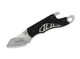 Kershaw CinderDas Cinder ist ein leistungsstarkes Messer in Schlüsselbundgröße und überzeugt mit hoher Schneidkraft. Seine Kllinge aus 3Cr13 ist mit einem Stonewash-Finish versehen und öffnet per Daumenpin. Der robuste, praktische schwarze Griff aus glasfaserverstärktem Nylon beherbergt den zuverlässigen Linerlock und ist zudem sehr widerstandsfähig und pflegeleicht. Für durstige Kehlen hält das feurige Cinder einen praktischen Flaschenöffner bereit. Mit Fangriemenöse.Technische DatenGesamtlänge: 10,2 cmKlingenlänge: 6,6 cmKlingenstärke: 2,3 mmGewicht: 26 GrammKlingenmaterial: 3Cr13Griffmaterial: FRNVerschluss: LinerlockÖffnungshilfe: DaumenpinÖffnungsmechanismus: ManuellFarbe: SchwarzKlingenfarbe: Unbeschichtet