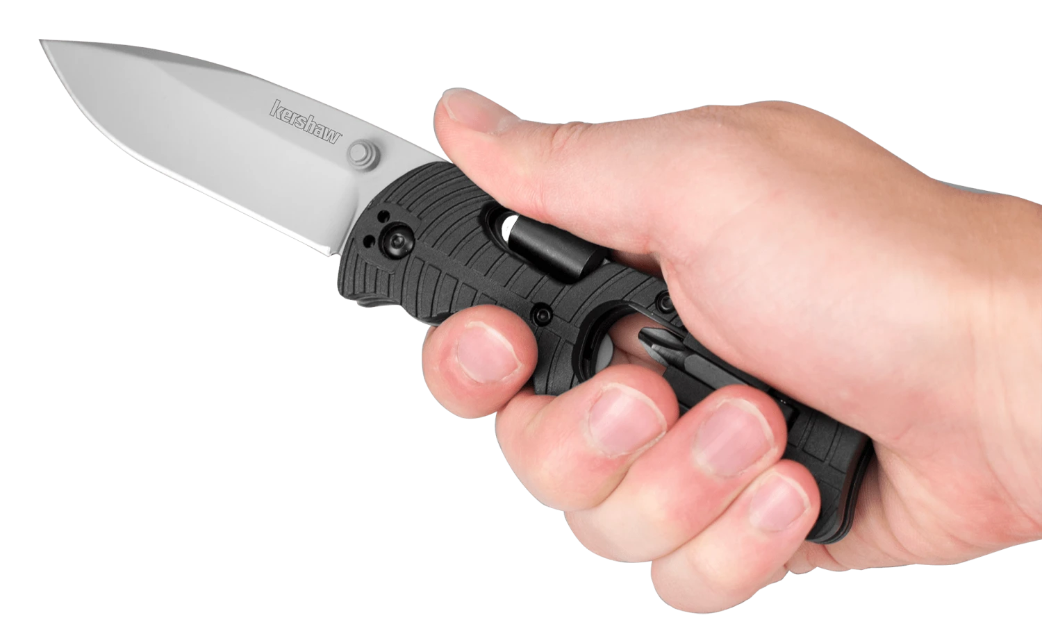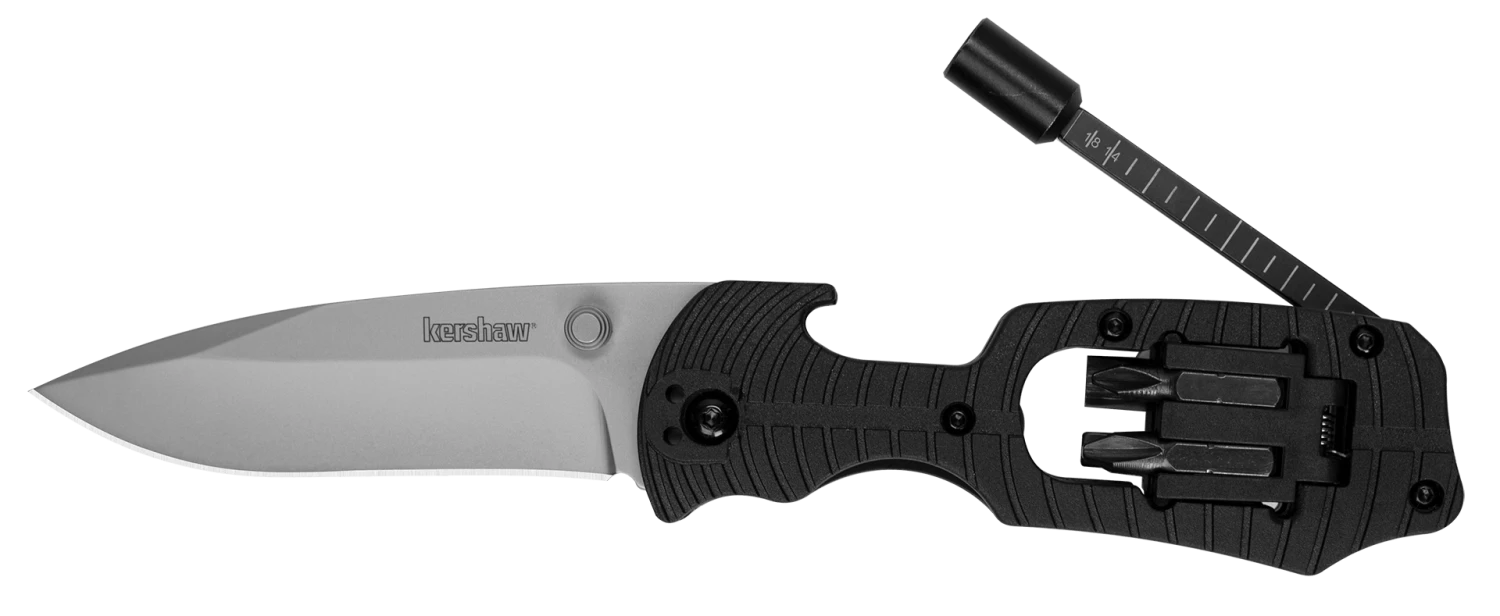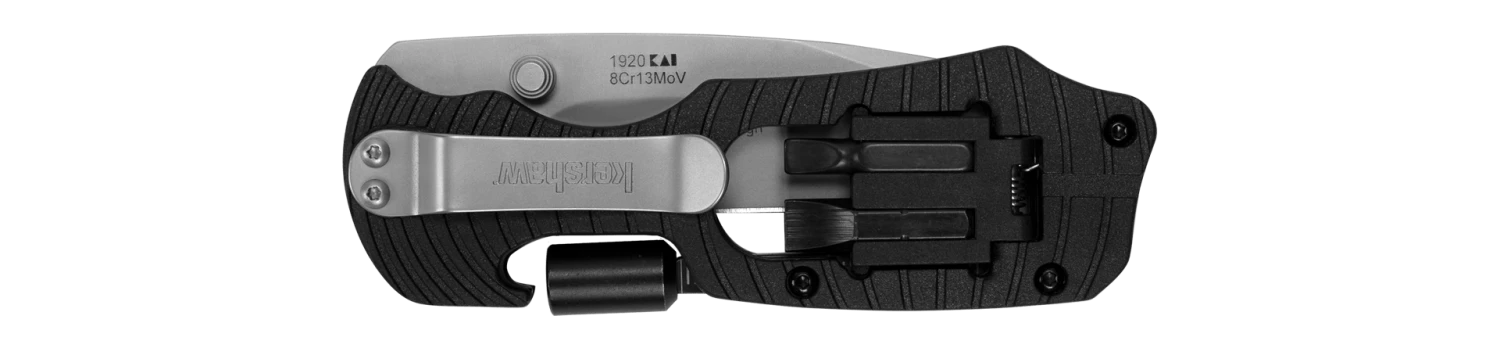 Die Klinge besteht aus rostfreiem 8Cr13MoV-Stahl und hat ein mattes Finish. Sie lässt sich mit einem Stift an der Klinge öffnen und wird durch einen Liner Lock in der offenen Position gehalten. Der Griff ist aus faserverstärktem Nylon (GRN) gefertigt. Das Messer verfügt über einen Bit-Öffnungsaufsatz und eine ausklappbare Schale mit vier Bits (2 Flach- und 2 Kreuzbits) im Griff. Das Messer ist mit einem Clip für den Transport in einer Tasche ausgestattet.
