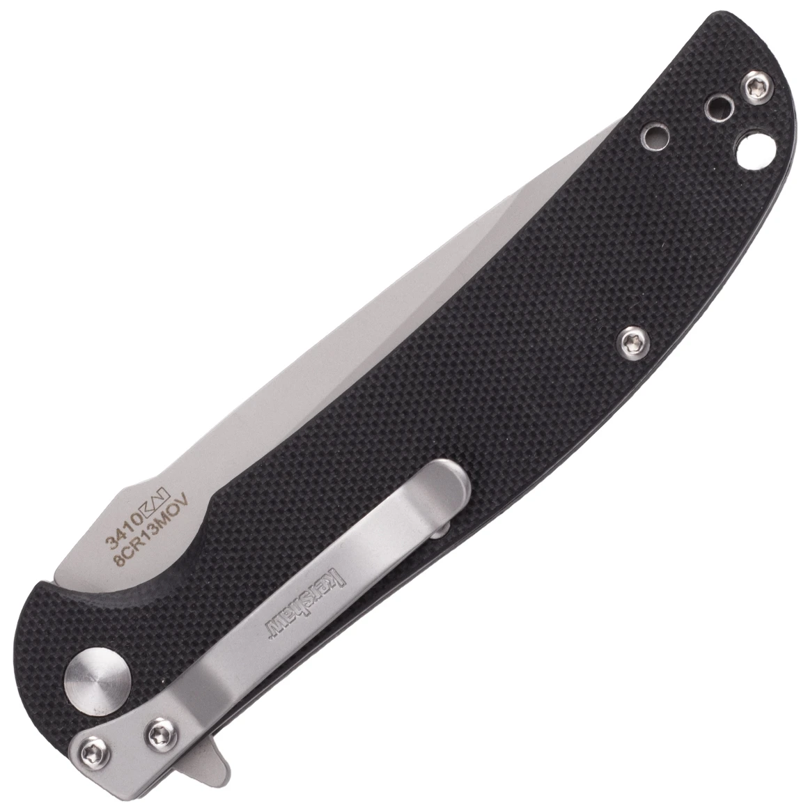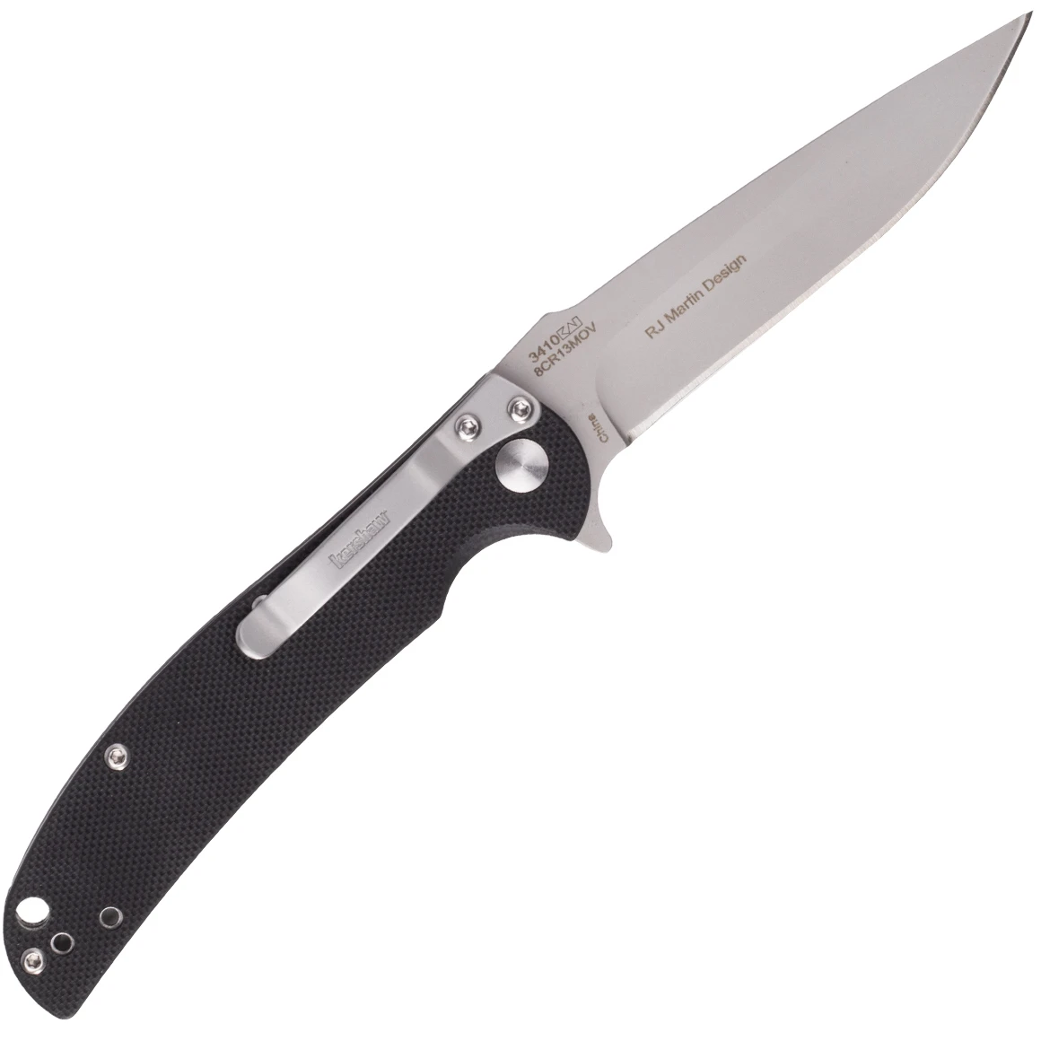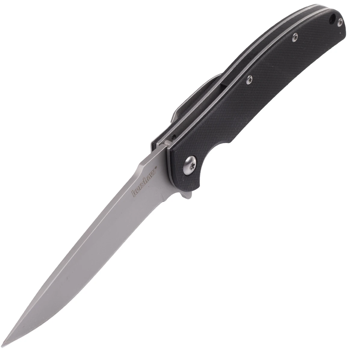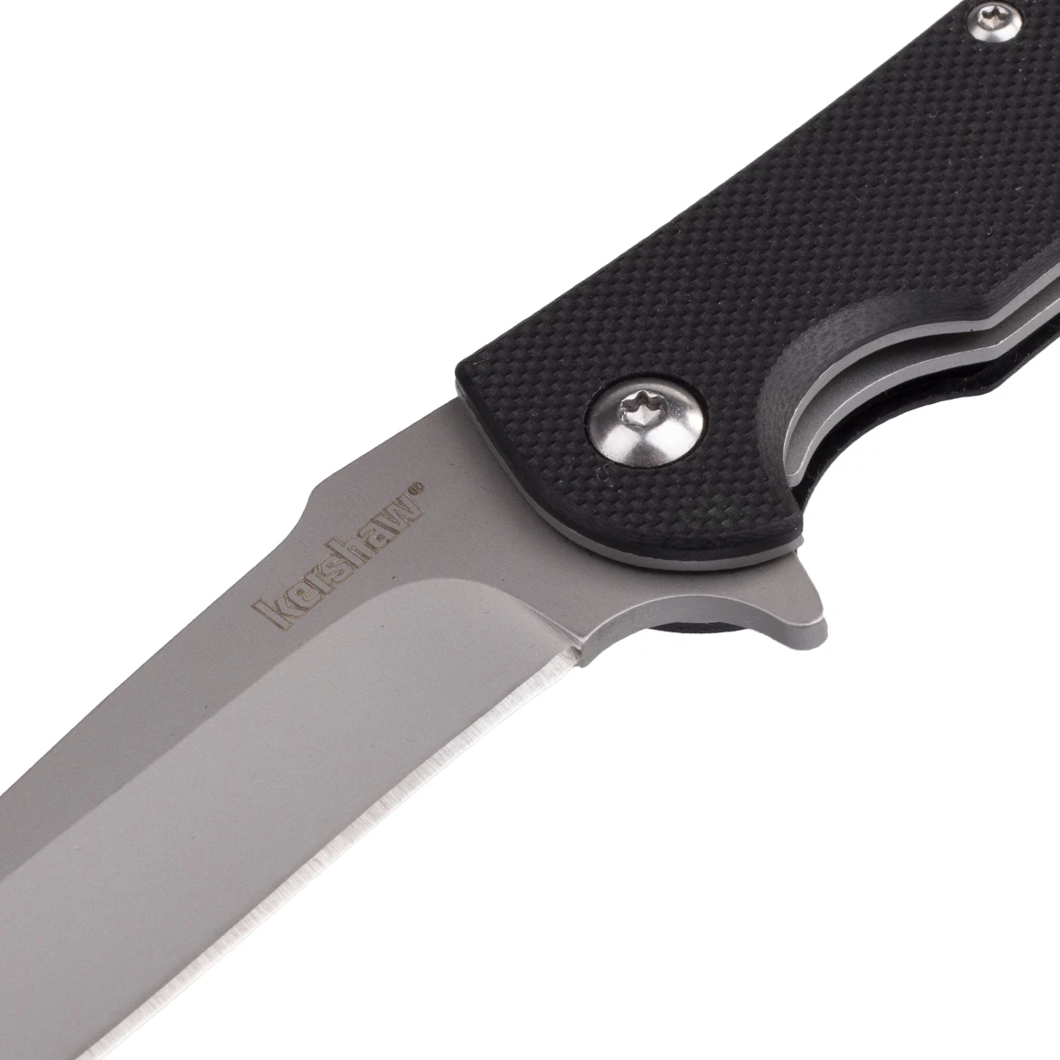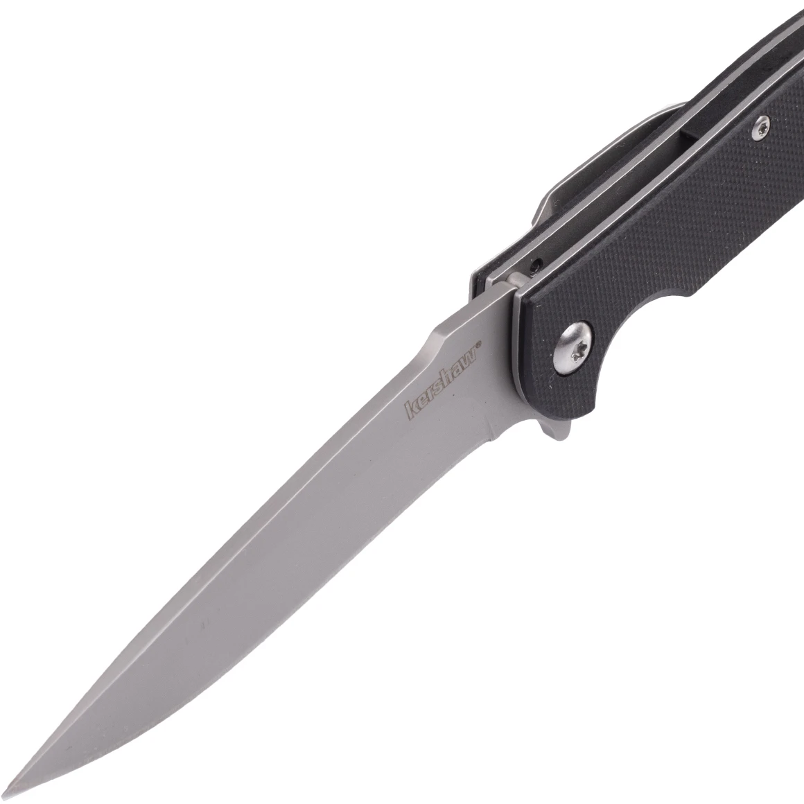 Das tägliche Kershaw Chill Klappmesser mit einer schmalen Drop Point Klinge aus 8Cr13MoV Stahl öffnet sich mit einem Flipper und ist im geöffneten Zustand durch ein Linerlock Schloss gesichert. Der Griff besteht aus schwarzem G10 mit Schuppen aus Edelstahl 410, mit einem Loch für eine Schnur und einer Tasche für Taschen.
