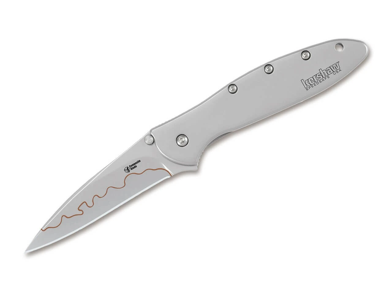 Das mit einer Composite-Klinge und der als SpeedSafe bekannten Federunterstützung ausgestattete Kershaw Leek CB wurde von Ken Onion entworfen und bietet sich als vielseitiges EDC an. Die Composite-Klinge besteht aus 4C28N und D2 und ist mit einer dekorativen Kupfer-Akzentuierung versehen. Der Griff wird aus rostfreiem Edelstahl gefertigt und mit einer Fangriemenöse ausgestattet. Der umsetzbare Clip (Tip-up/Tip-down) ist großzügig dimensioniert.