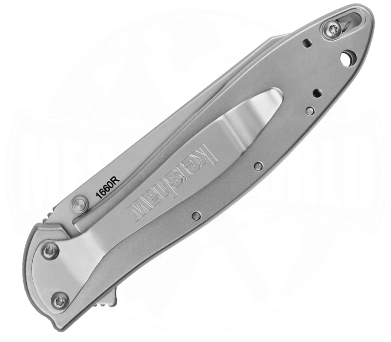 Ken Onion ist wohl einer der größten Sterne am Messer-Himmel. Unzählige Designs für die verschiedensten Marken wie CRKT, Kershaw, Böker und Co. gehen auf sein Konto. Seine Messer zeichnen sich durch den praktischen Nutzen im Alltag sowie durch eine innovative Funktionsweise aus. Beim Random Leek greift die Designsprache Onions eindrucksvoll durch. Der Star der Show ist natürlich die unverschnörkelte, modifizierte Tanto-Klinge aus scharfem und schnitthaltigem 14C28-Stahl. Als Halbautomatik-Messer lässt sich das schicke Einhandmesser wahlweise per Flipper oder Daumenpin öffnen. Genannt wird dieser Assisted Opening-Mechanismus „Speedsafe“. Passend zum Look der Bead-Blast-Finish Klinge, sind die Griffschalen in schlichtem Edelstahl-Silber gehalten. Für Sicherheit beim Arbeiten sorgt ein stabiler Frame-Lock, während eine kleine Daumenauflage den Arbeitskomfort abdeckt. Oben drauf kommt noch ein Pocket-Clip, der sich ganz nach eigenem Geschmack umsetzen lässt.