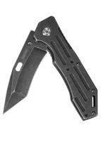 Taschenmesser Kershaw Lifter mit BlackWash-Finish Das Lifter mit taktischer modifizierter Tantoklinge bietet eine taffe bearbeitete Optik.Durch das Ganzstahl-Design kommt Kershaws BlackWash-Finish auf Klinge und Griff ganz besonders zur Geltung. Zwar verleiht BlackWash dem Klappmesser eine bereits abgenutzte Optik, aber es geht bei diesem Finish nicht nur um das Äußere. Diese Beschichtung bietet zusätzlichen Schutz für das Metall und hilft dabei, mögliche Gebrauchsspuren wie z. B. Kratzer zu kaschieren.Mit dem SpeedSafe Öffnungsmechanismus lässt sich die Klinge dieses Klappmessers schnell und leichtgängig ausfahren. Zum Aufklappen des Messers kann der integrierte Flipper oder der Daumenöffner benutzt werden. Ein stabiler Frame-Lock gewährleistet eine sichere Arretierung der Klinge im geöffneten Zustand und schließt nach Gebrauch auch problemlos.Das Kershaw Lifter ist mit einem Deep-Carry-Taschenclip ausgerüstet und lässt sich somit, bequem und diskret, tief in der Hosentasche tragen.Technische Daten Klingenmaterial: rostfreier 4CR14-Stahl mit schwarzem BlackWash™-FinishGriffmaterial: rostfreier Stahl mit schwarzem BlackWash™-Finish Gesamtlänge: ca. 20,1 cm Klingenlänge: ca. 8,9 cm Geschlossene Länge: ca. 11,4 cm Gewicht: ca. 162 GrammSpeedSafe® Öffnungshilfe Flipper und Daumenpin Frame-Lock Deep-Carry-Taschenclip, nicht umsetzbar Hersteller-Artikelnummer: 1302BW