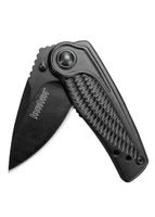 Taschenmesser Kershaw SpokeMit einer Klingenlänge von gerade mal 2 Zoll (ca. 5 cm) lässt sich das Kershaw Spoke Taschenmesser problemlos nahezu überallhin mitnehmen. Und selbst mit solch einer kompakten Klinge ist dieses Messer sehr praktisch. Trotz geringerer Klingenlänge meistert es alle anfallenden Schneidaufgaben schnell und mühelos, dank seines ausgeprägten Bauches mit großer Schneidefläche.Mit dem SpeedSafe Öffnungsmechanismus und dem integrierten Flipper lässt sich die Klinge dieses Klappmessers schnell und leichtgängig ausfahren. Der etwas überdimensionierte Flipper dient außerdem als Fingerschutz, wenn das Messer aufgeklappt ist. Der Griff aus Stahl bietet eine strukturierte Oberfläche mit einem ungewöhnlichen Muster, das für sichere Griffigkeit sorgt. Die schwarze Beschichtung verleiht dem Messer eine großartige Optik und der stabile Liner-Lock gewährleistet eine sichere Arretierung der Klinge während des Gebrauchs. Das Spoke ist mit einem umsetzbaren Deep-Carry-Taschenclip und einem schwarz beschichteten Stop-Pin ausgestattet. Technische Daten Klingenmaterial: rostfreier 4CR14-Stahl, schwarz beschichtetGriffmaterial: Stahl, schwarz beschichtetGesamtlänge: ca. 12,1 cmKlingenlänge: ca. 5,1 cm Geschlossene Länge: ca. 7,1 cm Gewicht: ca. 89 g SpeedSafe® Öffnungshilfe mit Flipper Liner-Lock Umsetzbarer Taschenclip (links/rechts, Tip-Up)Hersteller-Artikelnummer: 1313BLK
